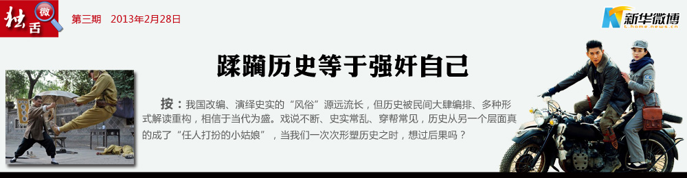 @水天:一90后女生為最新版《笑傲江湖》叫屈:“沒有于正,誰知道《笑傲江湖》?抄你,是你的榮幸,改你,是你的造化。沒有于正,我們永遠(yuǎn)不屑于理睬金庸?!彪m然金庸寫的不是史實(shí),但可見一代代的”洗滌“必將物是人非,一摞教科書也難”矯枉“一部電視劇。