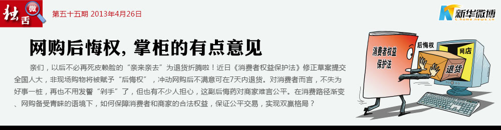 【賣家能有保障嗎?】 網(wǎng)絡(luò)是虛擬的,網(wǎng)購卻是實體的。為了防止消費者的惡意退貨,甚至以此為要挾出現(xiàn)職業(yè)退貨族,可以考慮非質(zhì)量問題的無理由退貨收取手續(xù)費。這應(yīng)該是“后悔權(quán)”對于賣家的一個保障!