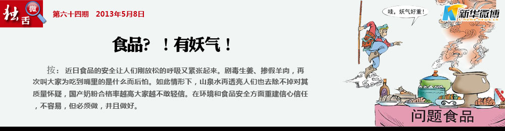 敢問天安全在哪里? 食品安全問題再發(fā)多發(fā),民以食為天,不禁要“天問”:為何監(jiān)管不能如出口食品質(zhì)檢那樣有效防范?同時(shí)也要“地嘆”:農(nóng)民為何產(chǎn)毒姜,自不食,心安理得!屈原“天問”是“世人皆醉我獨(dú)醒”的慨嘆之問,今“民以食為天”之問,能否不僅是慨嘆之問?