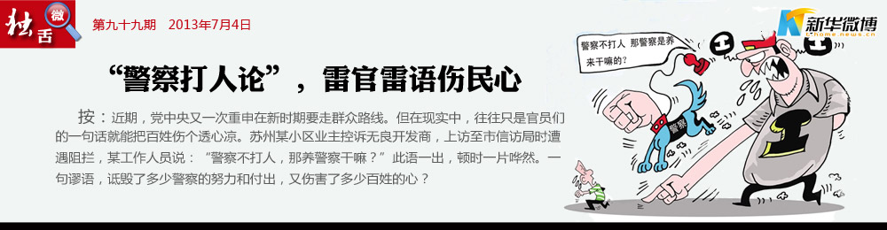 語不驚人死不休 警察是人民大眾的保護(hù)傘,警察是兒歌里的好叔叔,怎么就變成了一個野蠻群體的代名詞了?是一條魚腥了一鍋湯,還是湯本身出了問題?官員說的話,是要嚇壞百姓,還是拿警察叔叔們開玩笑?