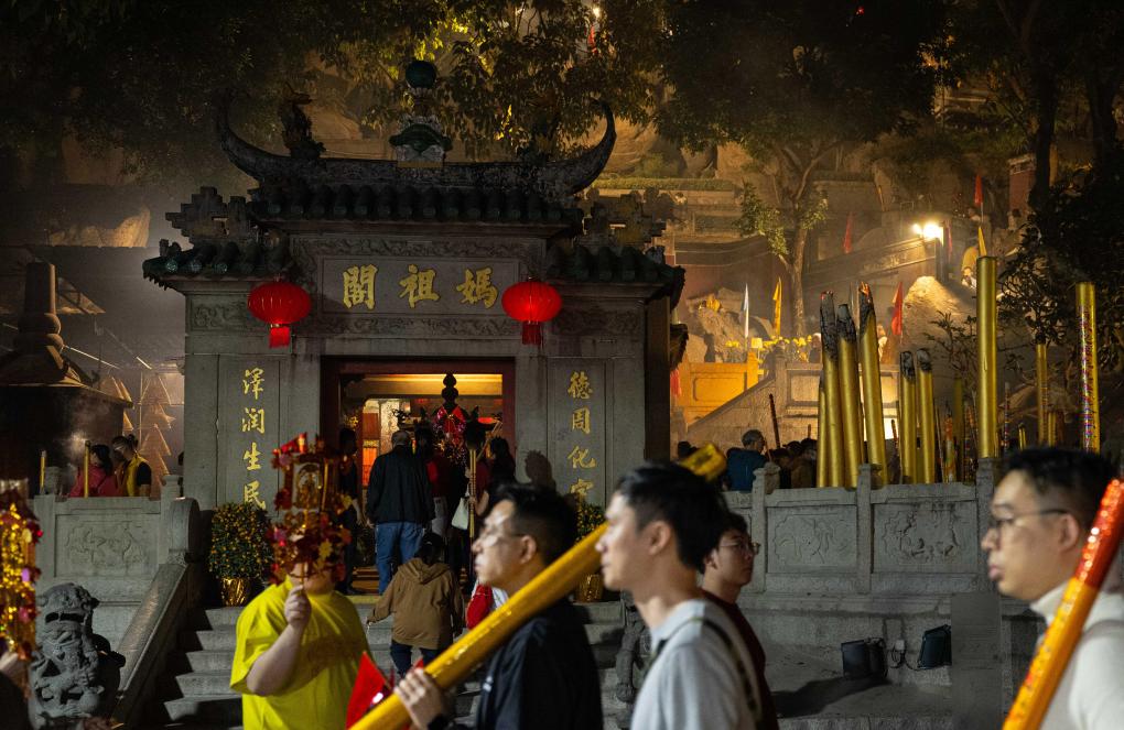 2月16日,澳门市民前往妈阁庙上香祈福。新华社发(张金加摄)