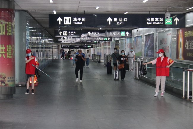 從落客平臺到公交車站再到中央廣場,志愿者們辛苦撿拾每一個煙頭,耐心解答每一次問詢,勸阻亂扔垃圾、隨地吐痰等不文明行為,為創(chuàng)城工作做出了自己的貢獻(xiàn)。