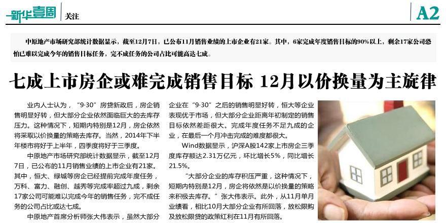 七成上市房企或難完成銷售目標(biāo)