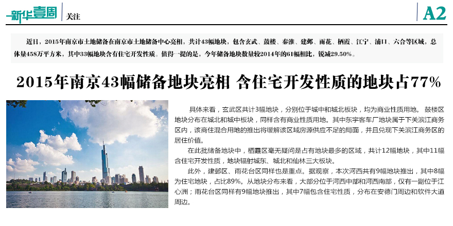 2015年南京市43幅儲(chǔ)備地塊亮相