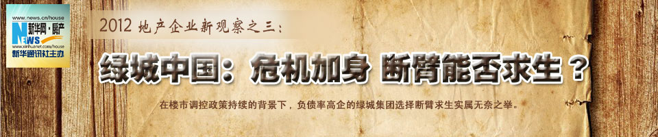 【綠城急否認(rèn)"破產(chǎn)門"】本輪調(diào)控中,綠城成為最被關(guān)注的高危企業(yè),從"信托調(diào)查門"到"退市門",再到"破產(chǎn)門",即便一些信息至今仍未被證實,但有一點可以肯定,此輪調(diào)整中,綠城資金緊張程度確為大型企業(yè)之首。網(wǎng)上突現(xiàn)綠城正申請破產(chǎn)傳聞,宋衛(wèi)平不得不在集團(tuán)網(wǎng)站撰文澄清,告知"綠城離破產(chǎn)還有很遠(yuǎn)的距離"。 …[詳細(xì)] |