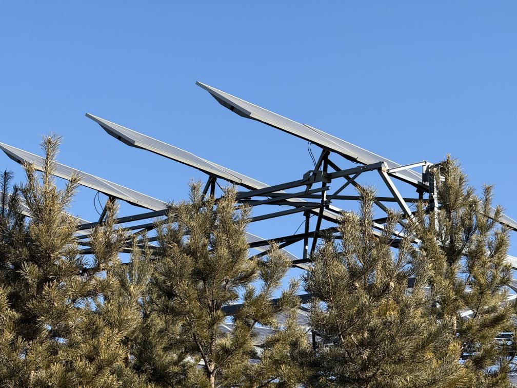 架设在灌木丛间的光伏电板。新华社记者 王怡静 摄