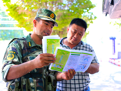 執(zhí)勤官兵向群眾宣傳禁毒知識