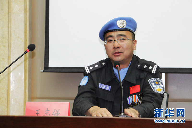 ????12月1日,中國(guó)第二支赴利比里亞維和警察防暴隊(duì)副隊(duì)長(zhǎng)王志強(qiáng)、隊(duì)員楊占江受邀為內(nèi)蒙古錫林郭勒盟2015年盟直政府系統(tǒng)第三期科級(jí)干部任職培訓(xùn)班學(xué)員授課,這是內(nèi)蒙古邊防總隊(duì)錫林郭勒盟邊防支隊(duì)維和英雄第二次受邀為駐地政府機(jī)關(guān)干部進(jìn)行授課。