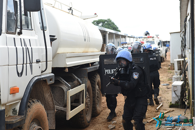 中國第四支駐利比里亞維和警察防暴隊(duì)展開應(yīng)急處突演練