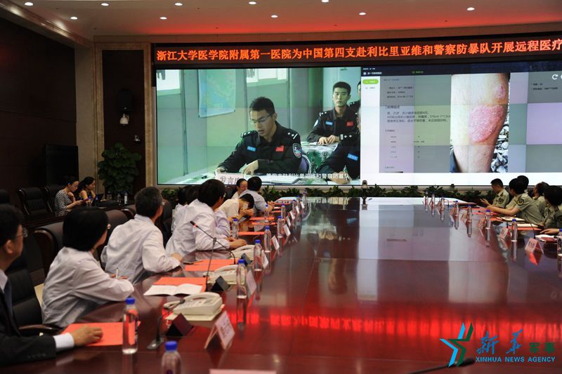 ????由中國第四支駐利比里亞維和警察防暴隊、浙江邊防總隊和浙江大學醫(yī)學院附屬第一醫(yī)院共同發(fā)起的“警民遠程醫(yī)療協(xié)作”日前啟動。6位醫(yī)療專家通過遠程視頻系統(tǒng),為遠在利比里亞的患病隊員進行會診。