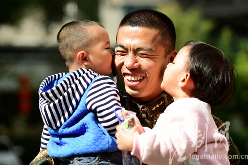 ????中隊(duì)長曾云強(qiáng)回顧軍嫂在隊(duì)期間,幽默地說:兩個(gè)大人相當(dāng)于給部隊(duì)增加了兩名后勤尖兵,營區(qū)更干凈了,飯菜更美味了;兩個(gè)寶寶更像給官兵增加了兩顆“開心果”,14個(gè)小時(shí)高負(fù)荷勤務(wù)歸來,寶寶一聲“叔叔辛苦了!”,誰都忍不住上前抱一抱、逗一逗、鬧一鬧,其樂融融。
