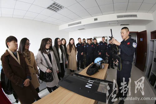 ????上午9時(shí),一輛掛著“相約藍(lán)盔、愛在警營(yíng)”紅色橫幅的大巴車緩緩駛?cè)刖?duì)營(yíng)區(qū)。一下車,姑娘們饒有興致地參觀了警隊(duì)內(nèi)務(wù)設(shè)置和裝備展示,現(xiàn)場(chǎng)觀看了藍(lán)盔方陣扣人心弦的戰(zhàn)術(shù)表演,隊(duì)員們氣吞萬(wàn)里的練兵激情、敢打必勝的過(guò)硬素質(zhì),一下子吸引了大家的眼光。在此之前,她們只是在心中默默仰慕那頂“藍(lán)色貝雷帽”,從電視上看到過(guò)威武帥氣的維和隊(duì)員。第一次如此近距離接觸,讓不少姑娘的心中蕩起層層漣漪。