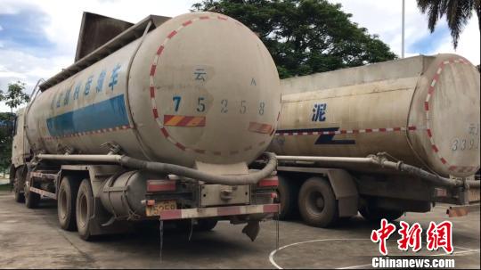 圖為兩輛改裝的水泥罐車(chē)?!《沤饎P 攝