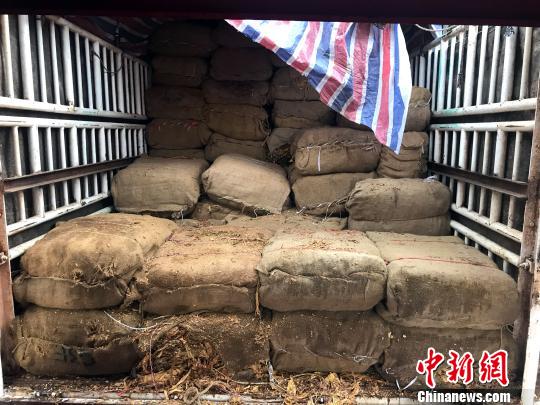 圖為貨車(chē)上拉的走私煙葉。杜金凱 攝