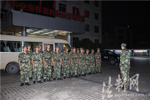 圖為肇慶邊檢站官兵連夜集結(jié)出發(fā)