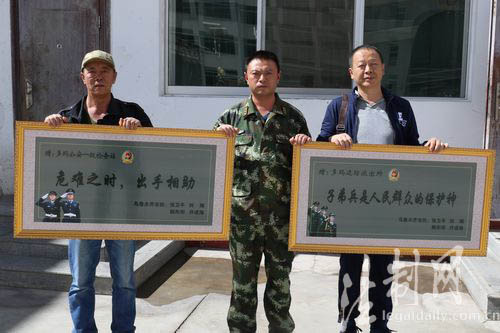 ????9月5日,一面寫有“子弟兵是人民群眾的保護(hù)神”的牌匾送到西藏邊防總隊(duì)阿里邊防支隊(duì),4名新疆籍游客激動地向這個支隊(duì)黨委感謝所屬單位多瑪邊防派出所官兵危難關(guān)頭救助之恩。