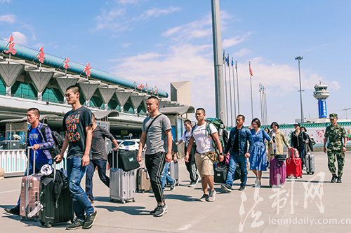 圖為新學(xué)員抵達烏魯木齊機場