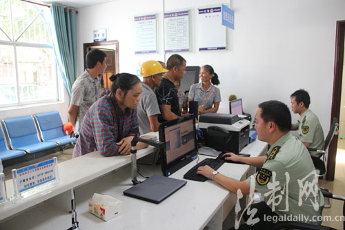 圖為辦證桌前官兵為群眾辦理業(yè)務