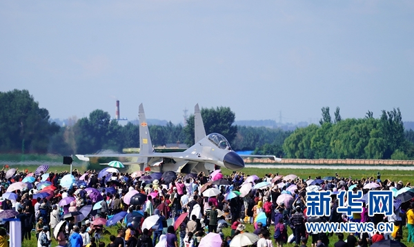 8月30日,人們觀看空軍新型戰(zhàn)機飛行表演。 新華社記者 王東明 攝