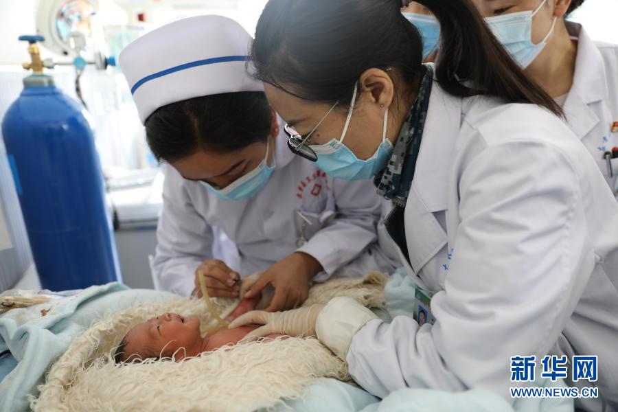在新生兒病房,空軍特色醫(yī)學(xué)中心援藏醫(yī)療隊隊員(右)帶教左貢縣人民醫(yī)院醫(yī)護(hù)人員(左)實施靜脈穿刺(7月17日攝)。新華社發(fā)(張洪濤 攝)