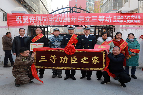 ????軍地領(lǐng)導(dǎo)與三等功獲得者許博及其家人合影