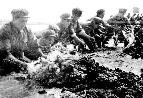 ????西昌衛(wèi)星發(fā)射中心西昌發(fā)射場建設(shè)初期,老一輩航天人在安寧河中搶建長征橋(資料圖片)。新華社發(fā)