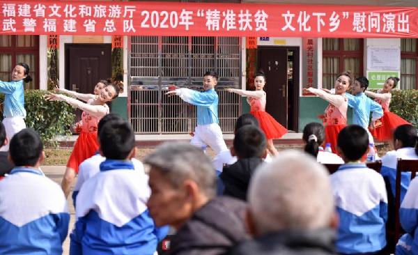 ????為學(xué)習(xí)貫徹黨的十九屆五中全會(huì)精神,推動(dòng)農(nóng)村文化建設(shè)發(fā)展,近日,武警福建總隊(duì)“文藝輕騎隊(duì)”聯(lián)合省市文旅部門歌舞團(tuán)到寧德市壽寧縣上黨村和龍巖市長(zhǎng)汀縣晨光村開展“精準(zhǔn)扶貧、文化下鄉(xiāng)”專項(xiàng)慰問(wèn)演出,給村民們帶去了歡聲笑語(yǔ),豐富了村民們的文化生活。