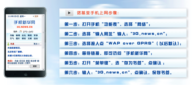 ? 手機(jī)上網(wǎng)步驟: 請(qǐng)選擇手機(jī)品牌查看上網(wǎng)步驟 諾基亞  摩托羅拉 三星 iPhone