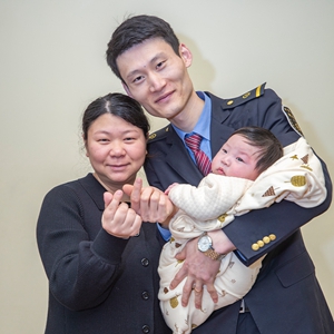付寶印是中國鐵路成都局集團有限公司重慶客運段的一名列車長。今年是付寶印工作以后的第7個春運,也是他無法和遠在北方的家人一起度過的第7個春節(jié)。剛剛喜添小寶寶的他本計劃今年過年帶著老婆孩子回吉林老家看望父母,為了響應就地過年的號召,他決定留在重慶本地過年,堅守春運崗位。工作之余,付寶印也通過視頻通話,和老家的親人“相聚”。
