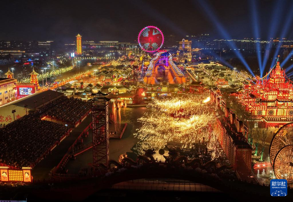 春节期间,河北省唐山市丰南区河头老街灯火璀璨、火树银花,为游客呈现出一场流光溢彩的视觉盛宴。