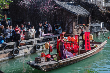 春节假期,浙江省桐乡市乌镇景区以“马上添福”为主题,融合“年俗、戏剧、科技、文化”四大类型,推出60余项活动,为游客呈现兼具传统韵味与当代活力的水乡新年。