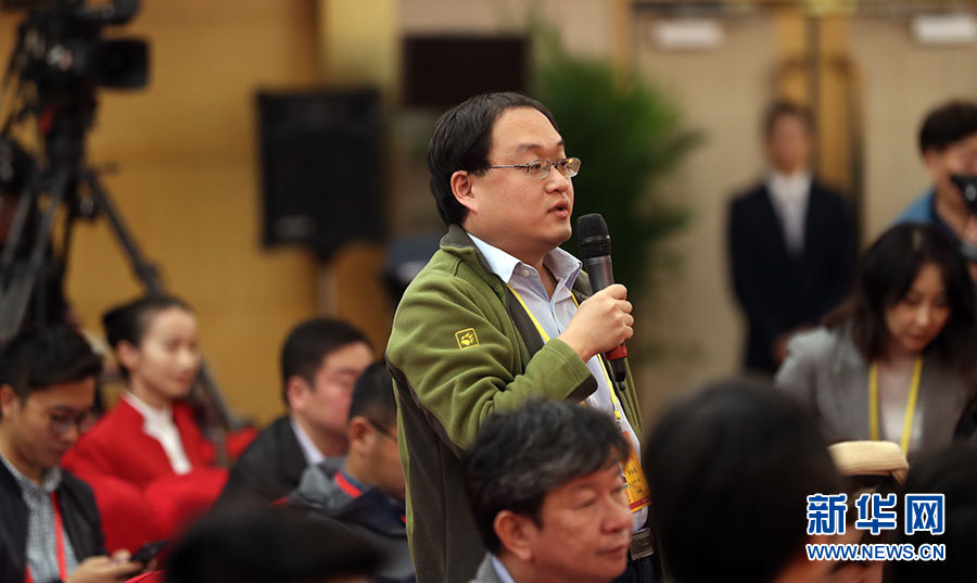 10月21日,十九大新聞中心舉辦集體采訪活動,主題為“農(nóng)業(yè)科技創(chuàng)新”。圖為經(jīng)濟日報記者提問。新華網(wǎng) 郝廣鵬攝