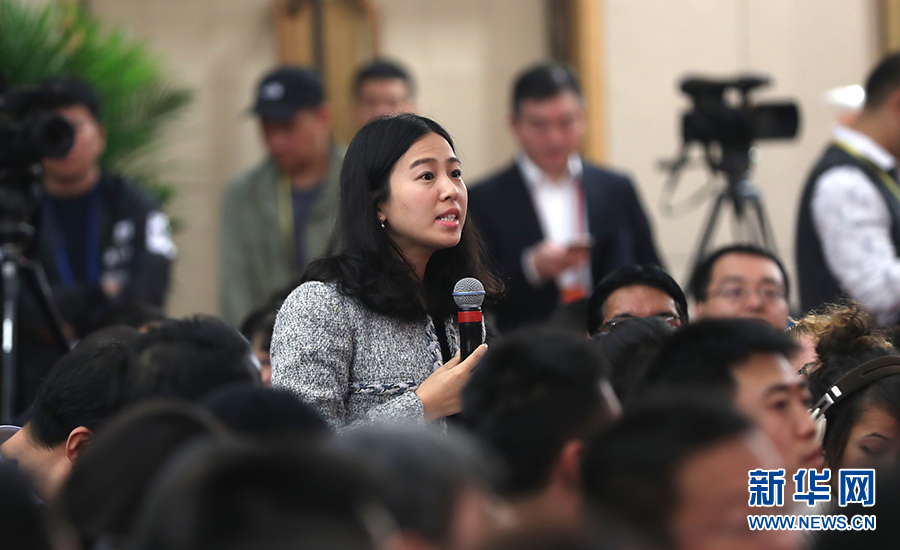 10月26日上午10:00,中國共產(chǎn)黨第十九次全國代表大會新聞發(fā)言人在梅地亞賓館二層新聞發(fā)布廳召開專題新聞發(fā)布會,請有關(guān)方面負(fù)責(zé)人解讀十九大報告,并回答記者關(guān)心的問題。圖為澳門澳亞衛(wèi)視記者提問。新華網(wǎng) 王成云 攝
