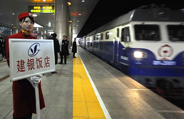 3月1日,內蒙古自治區(qū)出席全國政協(xié)十一屆四次會議的全國政協(xié)委員乘坐K90次列車抵達北京西站。