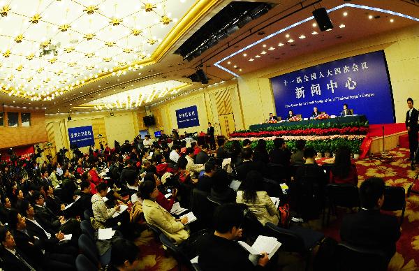 十一屆全國人大四次會議主席團(tuán)舉行第三次會議