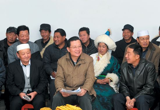 11月22日,省委書(shū)記、省人大常委會(huì)主任強(qiáng)衛(wèi)深入貴德縣河陰鎮(zhèn)大史家村,面對(duì)面向基層黨員和農(nóng)牧民群眾宣講黨的十八大精神。(記者 劉端強(qiáng) 攝)