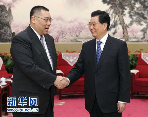 ??? 新華網(wǎng)快訊:國家主席胡錦濤21日下午在中南海會見了來京述職的澳門特別行政區(qū)行政長官崔世安。