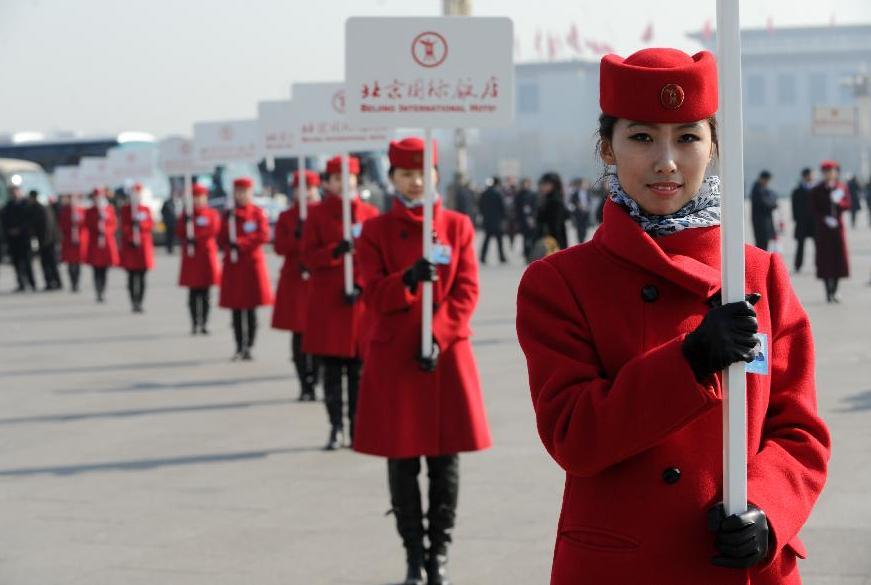[兩會(huì)花絮]會(huì)場(chǎng)外的紅衣靚影