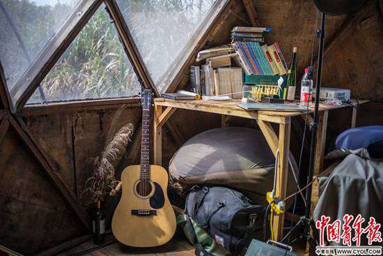 早在2011年,面對城市的高房價和霧霾,22歲的唐冠華就開始思考一種主流之外的生活方式。很快,從事廣告設計和理財分析工作的唐冠華和邢振先后離職,在青島嶗山的山林中建立了“自給自足實驗室”,盡量不使用與不可持續(xù)能源相關的工具,獨立生活了5年。