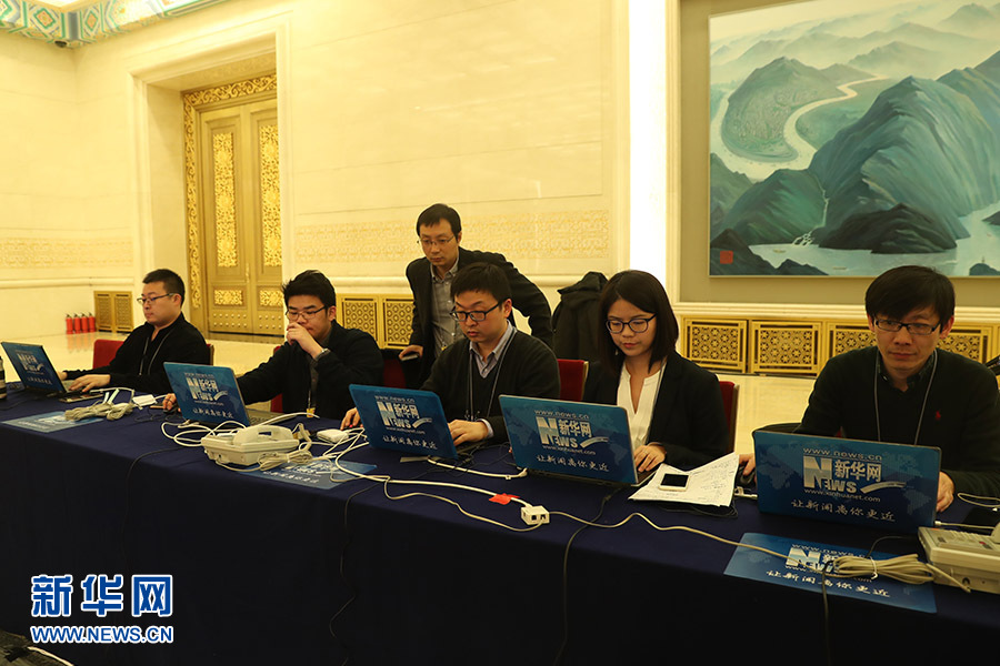 民主黨派中央和全國工商聯(lián)領(lǐng)導(dǎo)人記者會3月6日下午在人民大會堂金色大廳舉行,邀請民革中央主席萬鄂湘、民盟中央主席丁仲禮、民建中央主席郝明金、民進(jìn)中央主席蔡達(dá)峰、農(nóng)工黨中央主席陳竺、致公黨中央主席萬鋼、九三學(xué)社中央主席武維華、臺盟中央主席蘇輝、全國工商聯(lián)主席高云龍回答記者提問。圖為現(xiàn)場直播團(tuán)隊(duì)正在進(jìn)行準(zhǔn)備工作。新華網(wǎng)/中國政府網(wǎng) 陳杰 攝
