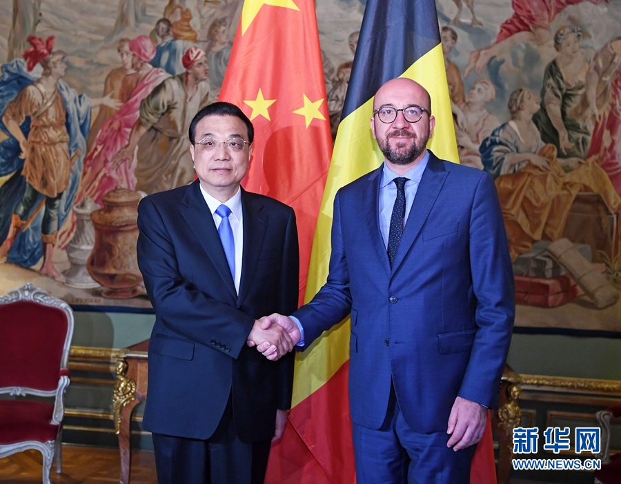 當?shù)貢r間4月9日上午,國務院總理李克強在布魯塞爾埃格蒙宮會見比利時首相米歇爾。新華社記者 張領 攝