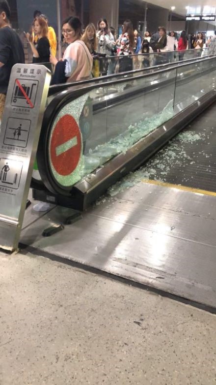 從許多微博大V和網(wǎng)友貼出的“受傷”步行自動扶梯照片來看,步行扶梯玻璃護(hù)欄碎了一地,一旁正是人山人海的接機(jī)粉絲。