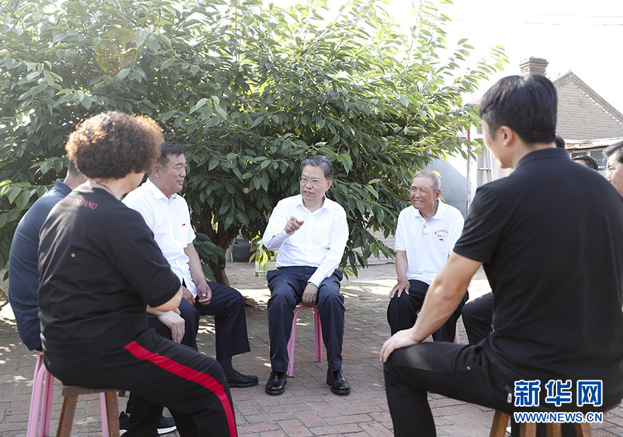 6月19日至21日,中共中央政治局常委、中央紀委書記趙樂際到遼寧省調研。這是6月19日,趙樂際在遼寧省海城市朱家村與村干部和村民代表面對面交流。 新華社記者 丁海濤 攝