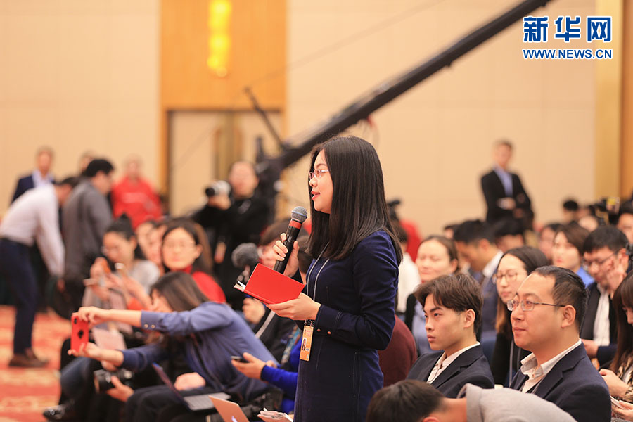全國政協(xié)十三屆二次會(huì)議3月5日15:00在梅地亞中心多功能廳舉行記者會(huì),邀請(qǐng)5位全國政協(xié)委員就“打贏防范化解重大風(fēng)險(xiǎn)、精準(zhǔn)脫貧、污染防治三大攻堅(jiān)戰(zhàn)”回答記者提問。圖為光明日?qǐng)?bào)記者提問。新華網(wǎng)/中國政府網(wǎng) 陳杰 攝