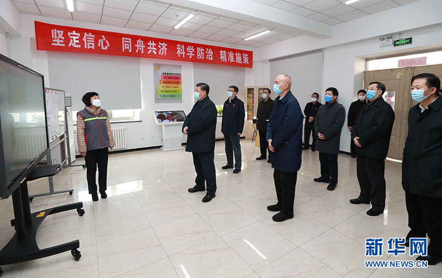 習近平首先來到北京市朝陽區(qū)安貞街道安華里社區(qū),了解基層一線疫情聯(lián)防聯(lián)控情況。在社區(qū)居民委員會疫情防控指揮部,習近平聽取了安貞街道和安華里社區(qū)開展聯(lián)防聯(lián)控情況介紹。習近平對社區(qū)采取多項措施,落實防控責任,實現入戶排查、重點群體監(jiān)控“兩個全覆蓋”等做法表示肯定。他強調,社區(qū)是疫情聯(lián)防聯(lián)控的第一線,也是外防輸入、內防擴散最有效的防線。把社區(qū)這道防線守住,就能有效切斷疫情擴散蔓延的渠道。全國都要充分發(fā)揮社區(qū)在疫情防控中的阻擊作用,把防控力量向社區(qū)下沉,加強社區(qū)各項防控措施的落實,使所有社區(qū)成為疫情防控的堅強堡壘。要以疫情防控工作成效來檢驗和拓展“不忘初心、牢記使命”主題教育成果,發(fā)揮基層黨組織政治引領作用和黨員先鋒模范作用,把社區(qū)居民發(fā)動起來,構筑起疫情防控的人民防線。