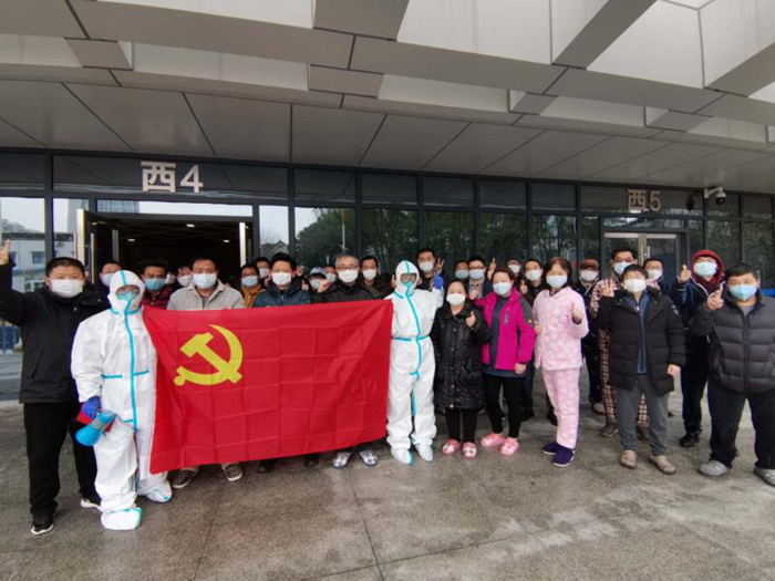 臨時黨支部成立后,會收集病人的需求,然后歸納向上面反饋,這樣問題容易得到解決,病人的情緒也可以得到安撫。比如大家普遍反映的不能洗澡問題,院方就連夜施工,安裝了兩個集裝箱供給病人洗澡。