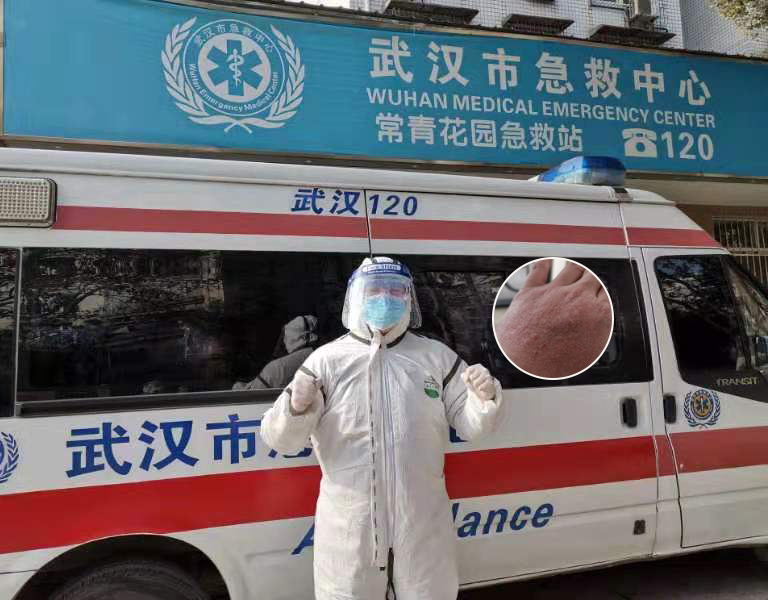 徐迪在救護(hù)車前大喊武漢要挺住、武漢加油
