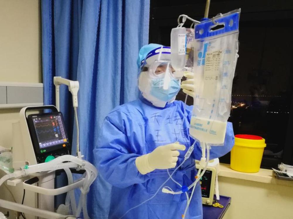 圖為北京天壇醫(yī)院支援武漢醫(yī)療隊王博在工作中。