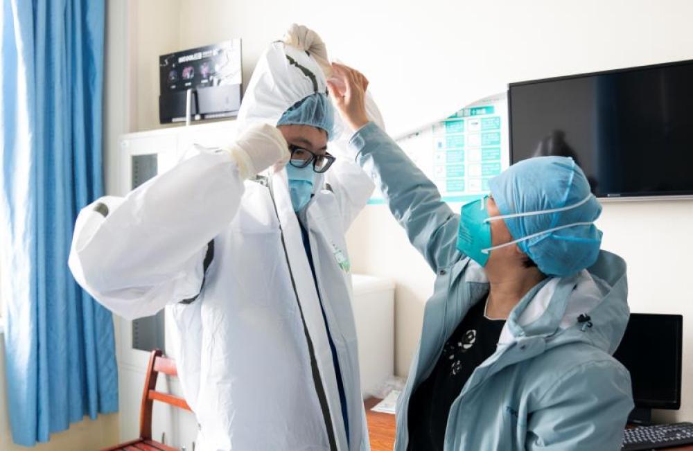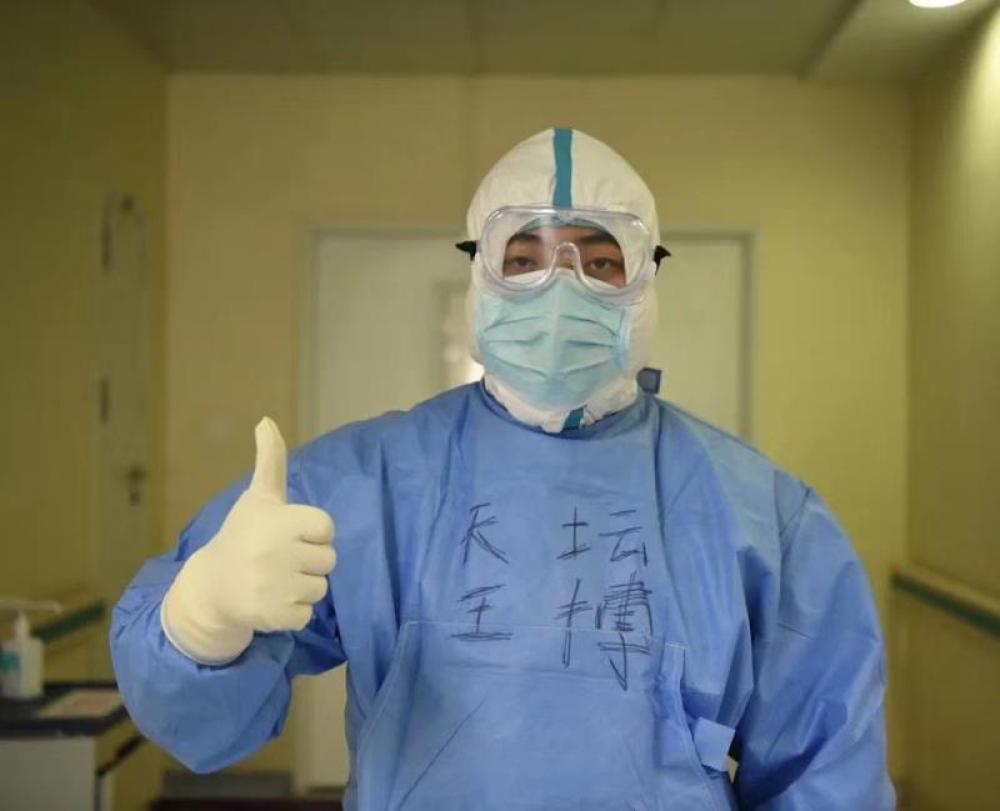 圖為北京天壇醫(yī)院支援武漢醫(yī)療隊王博在準備工作中。