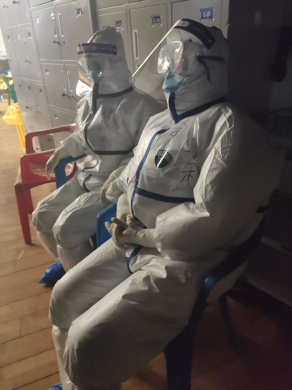 圖為貴州醫(yī)科大學(xué)附屬醫(yī)院援武漢醫(yī)療隊程小雪與同事。